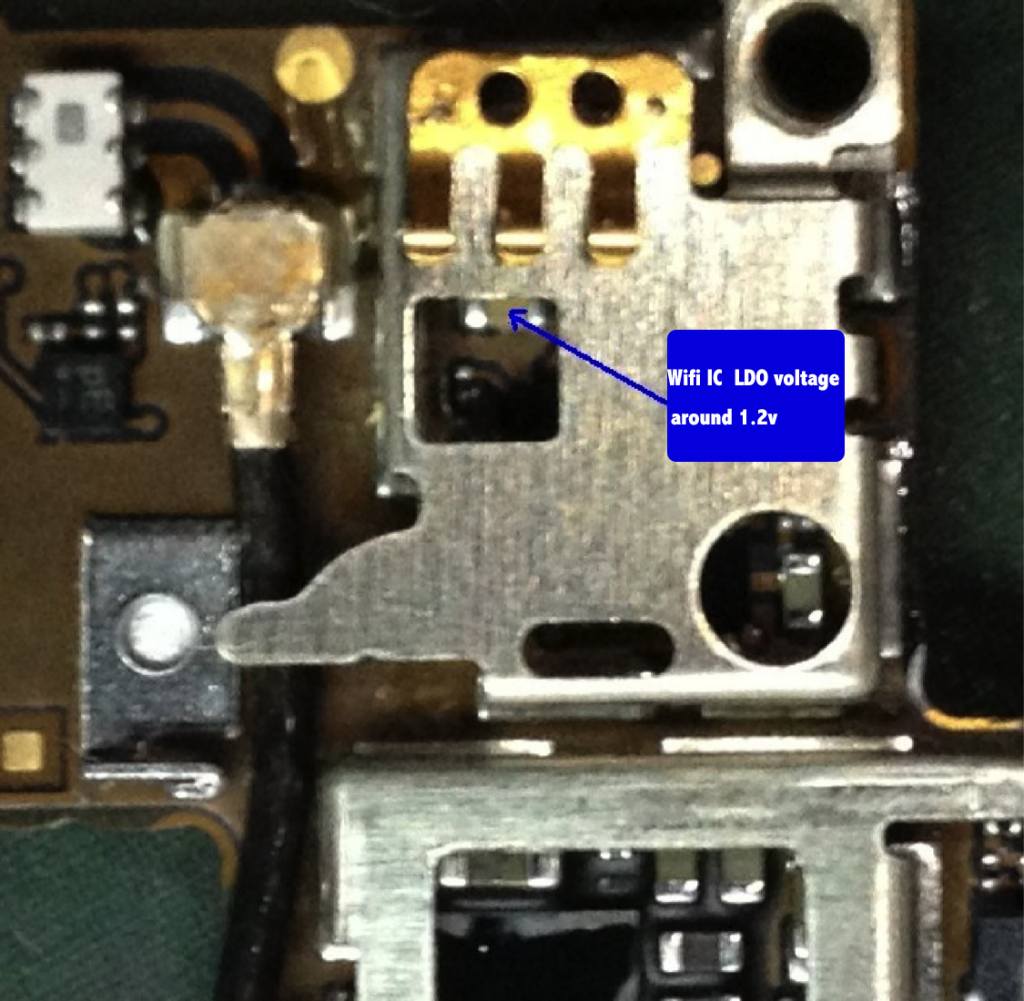 Speaking of (1)(2), if both of it working great (on right voltage), It might be (3) or wifi component ,But we can't test (3) The wifi IC LDO voltage will be the only one we can test. we can get wifi LDO voltage through C136_RF ,if u can't got the 1.2v or the voltage is too high that means wifi IC not working. lets see where we can find the C136_RF